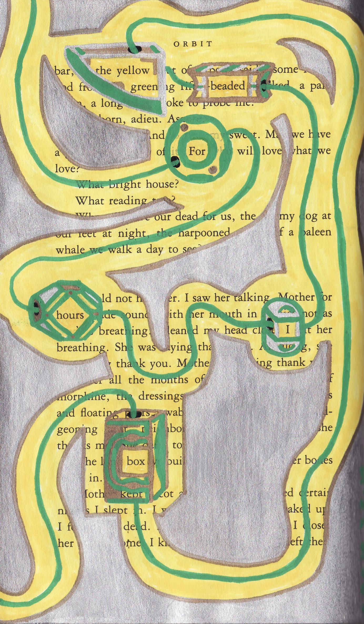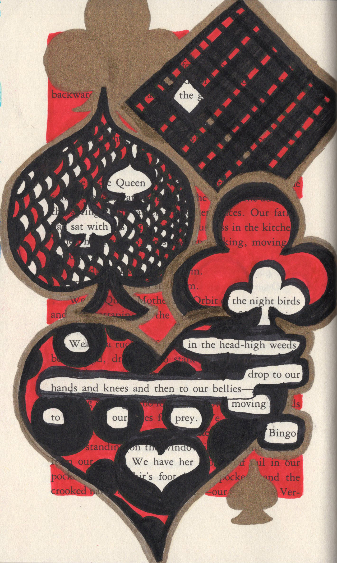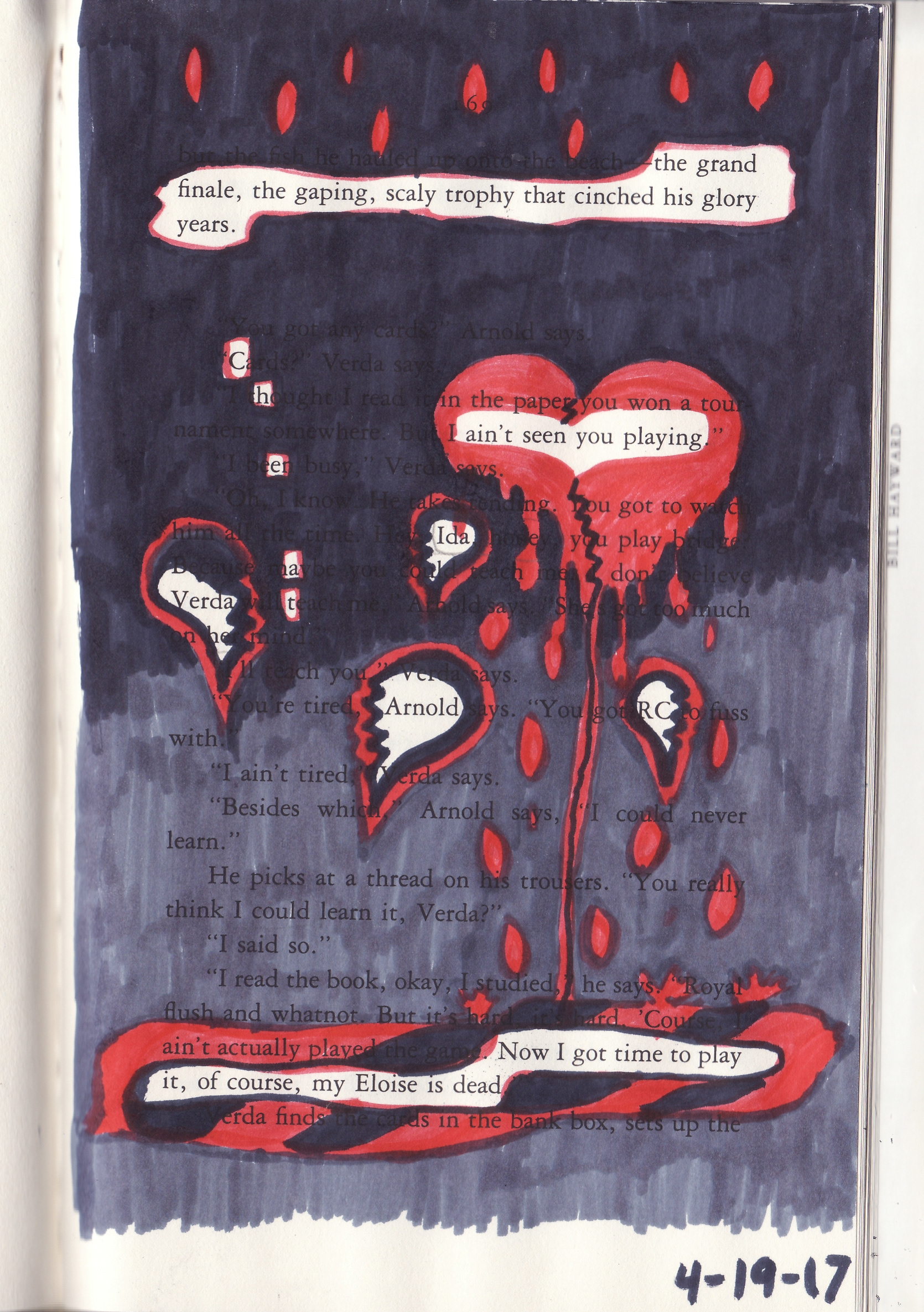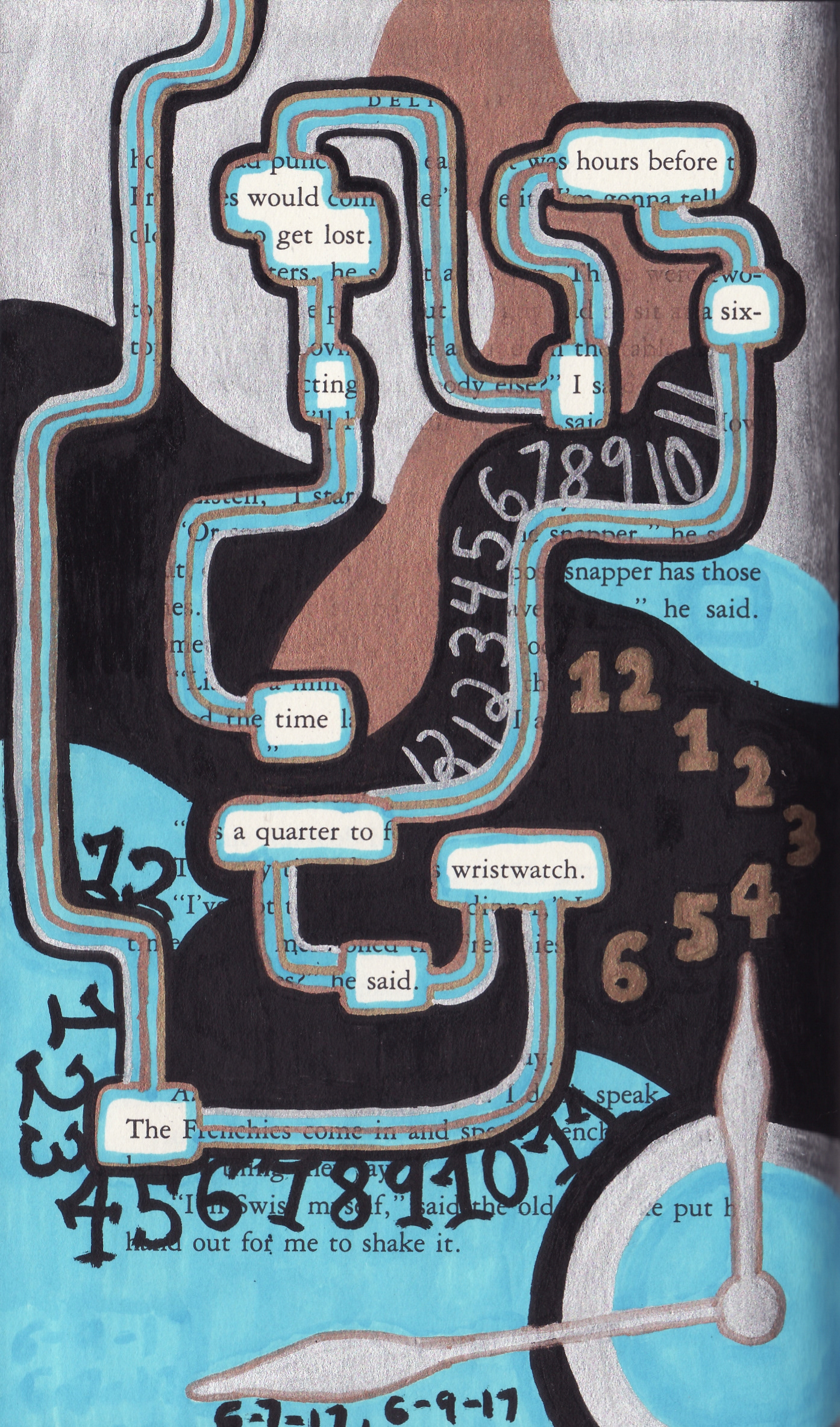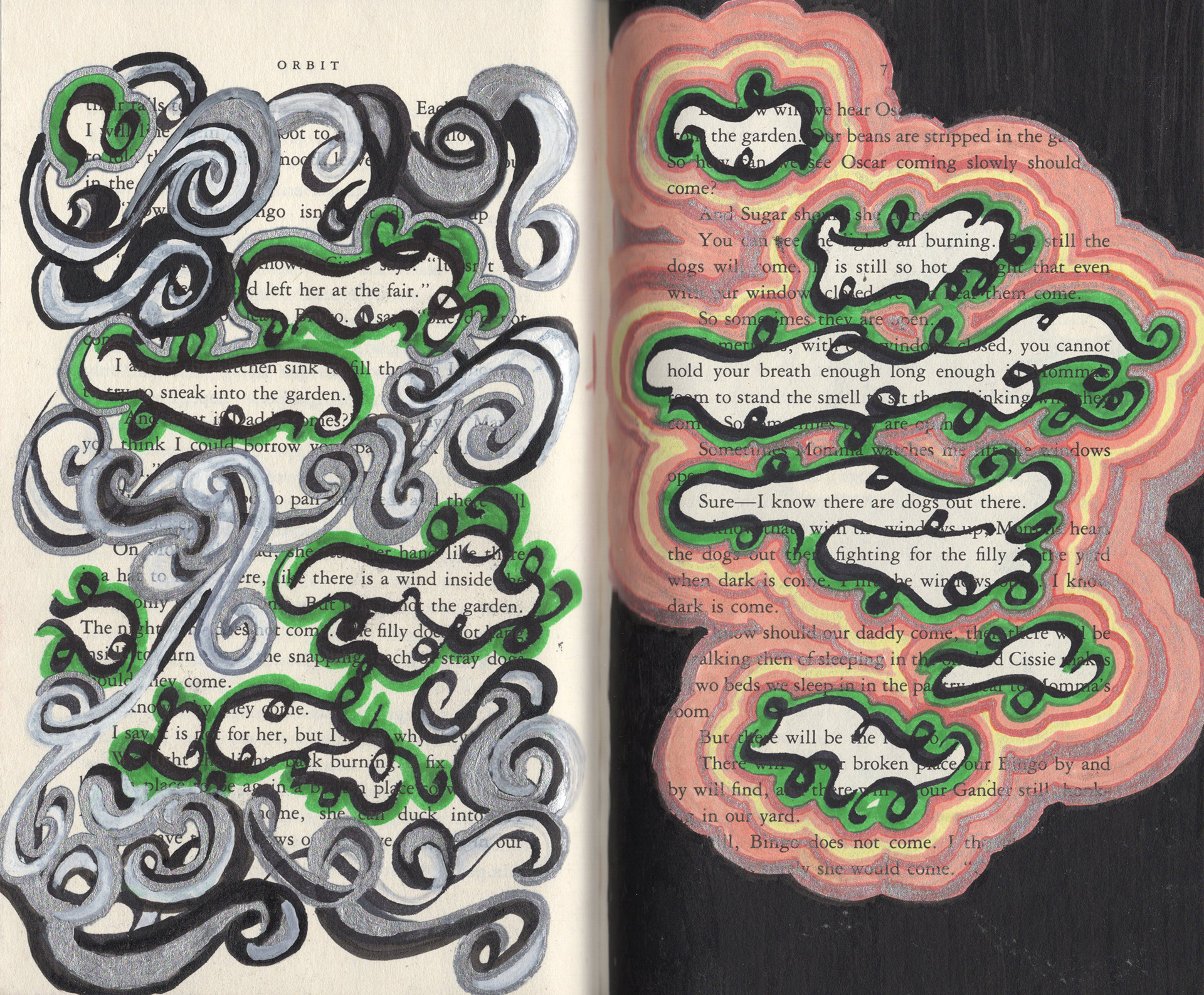 The dark shading to the right is due to the crease in the book I'm altering. All of the altered pages I'm posting on DeviantArt have not been removed from the book.