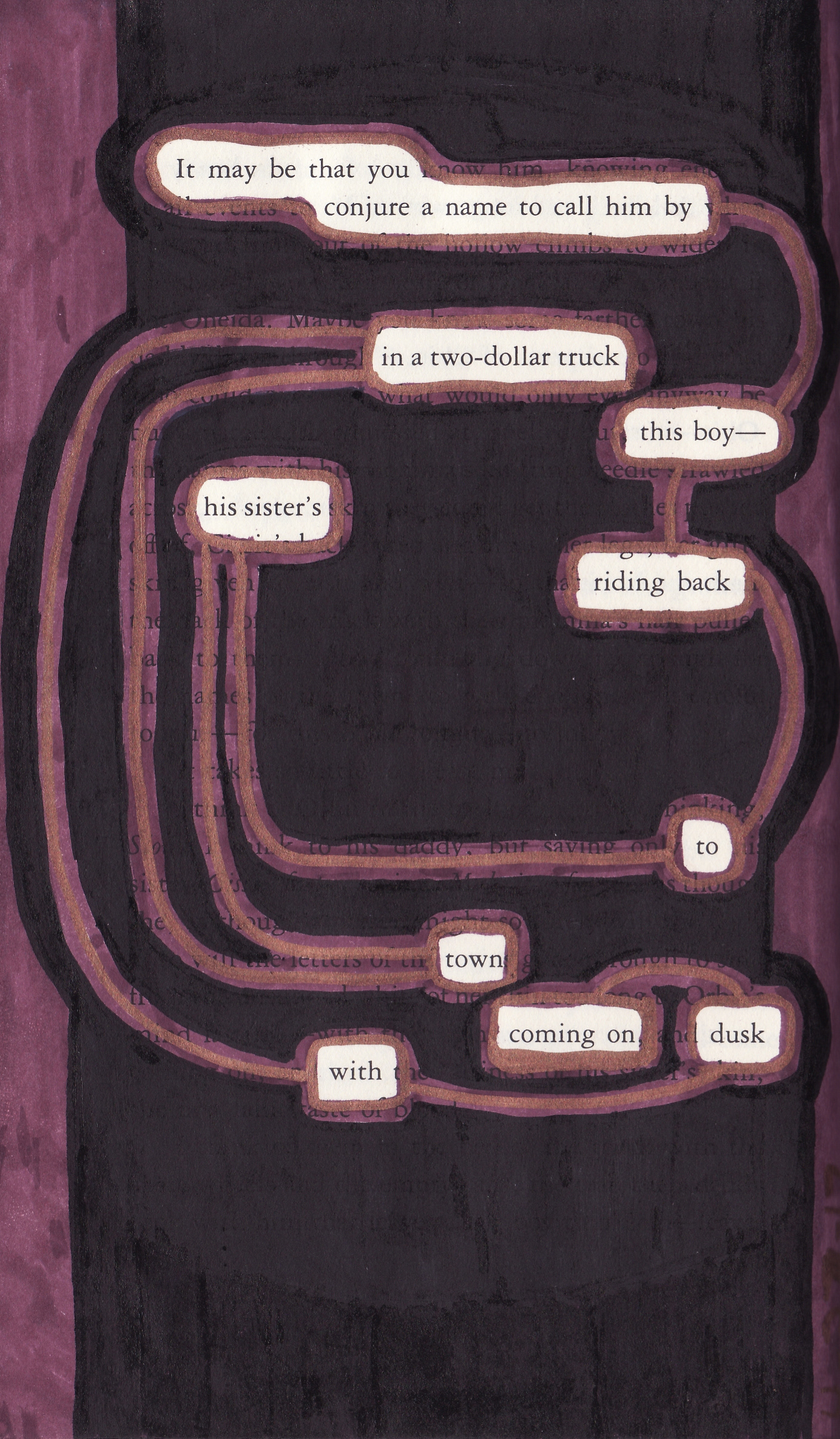 It may be that you conjure a name to call him by, this boy—riding back to his sister's town in a two-dollar truck with dusk coming on.