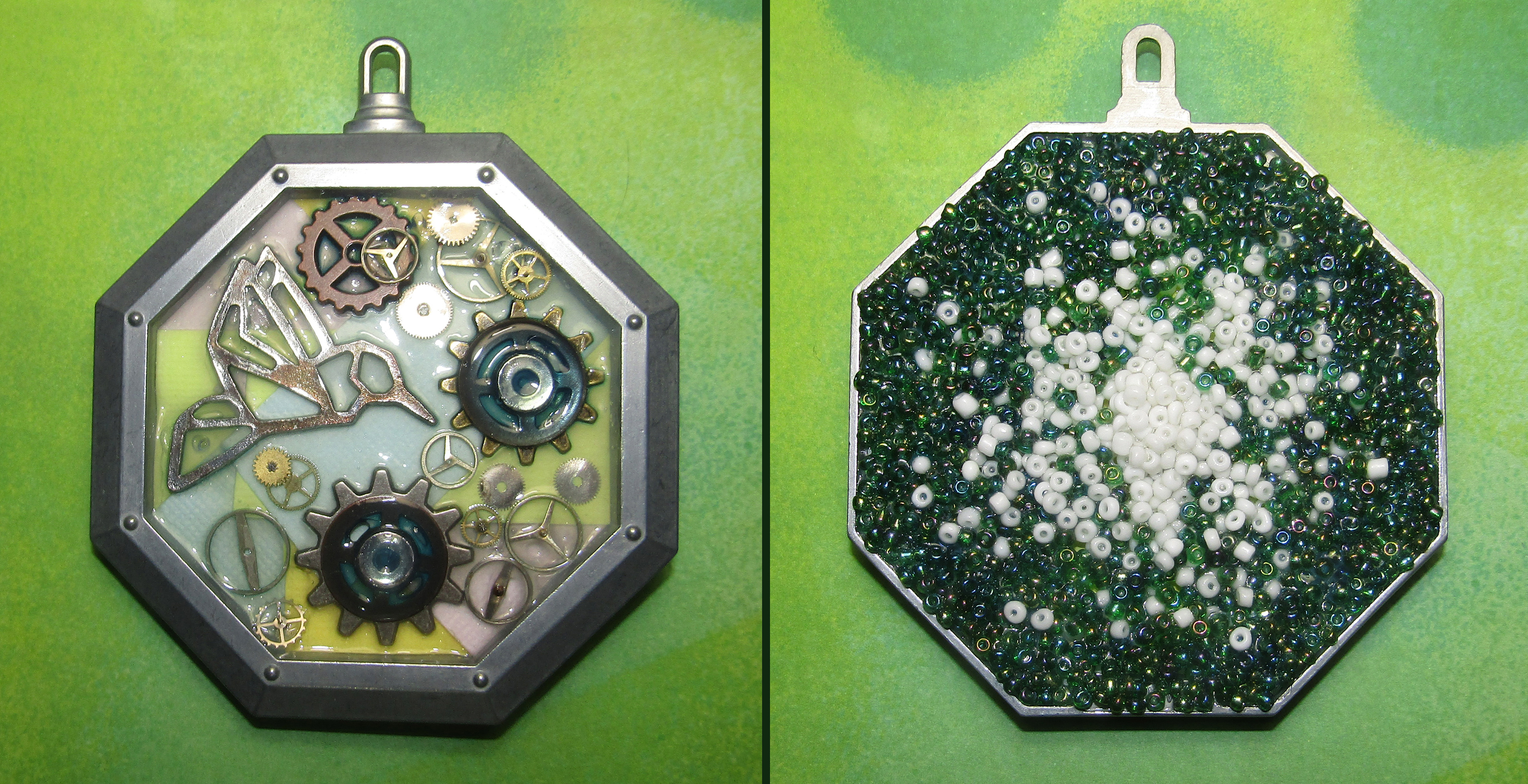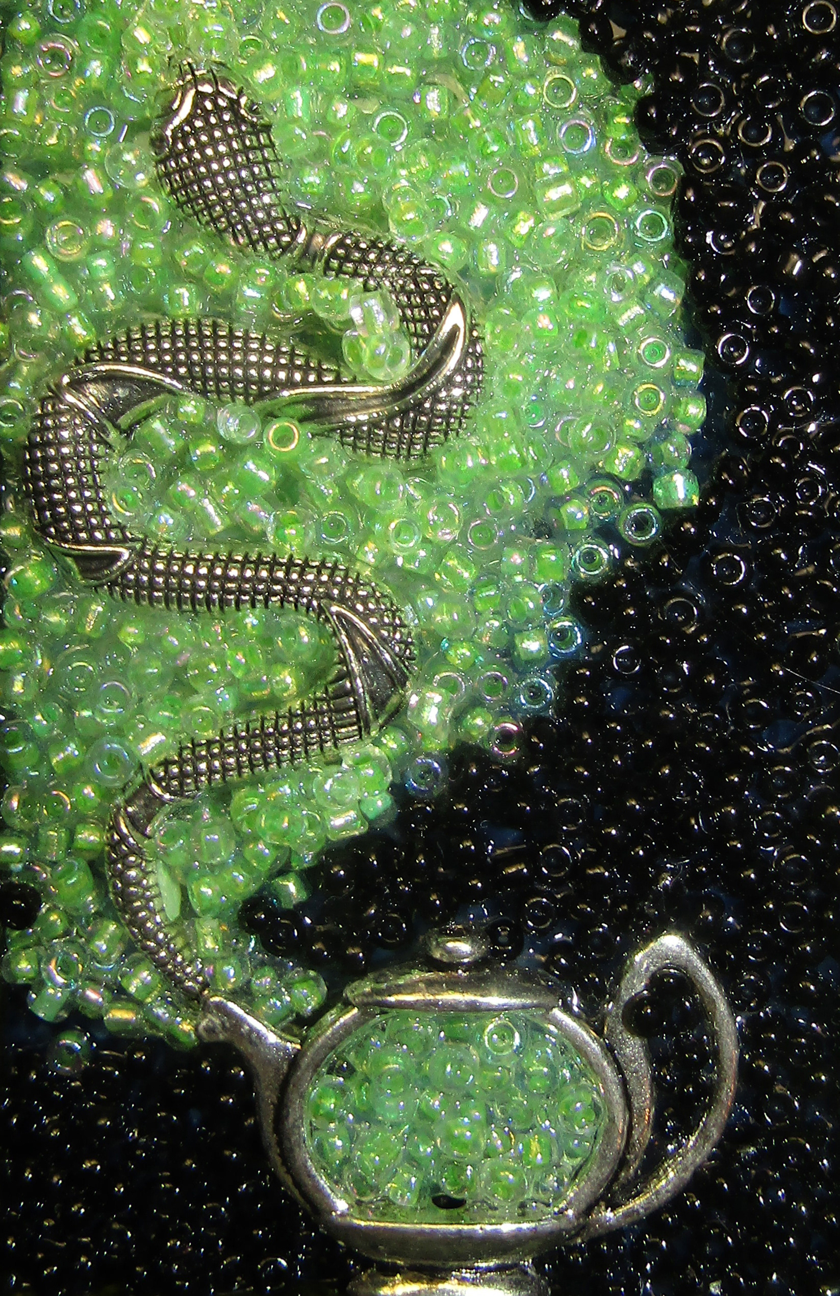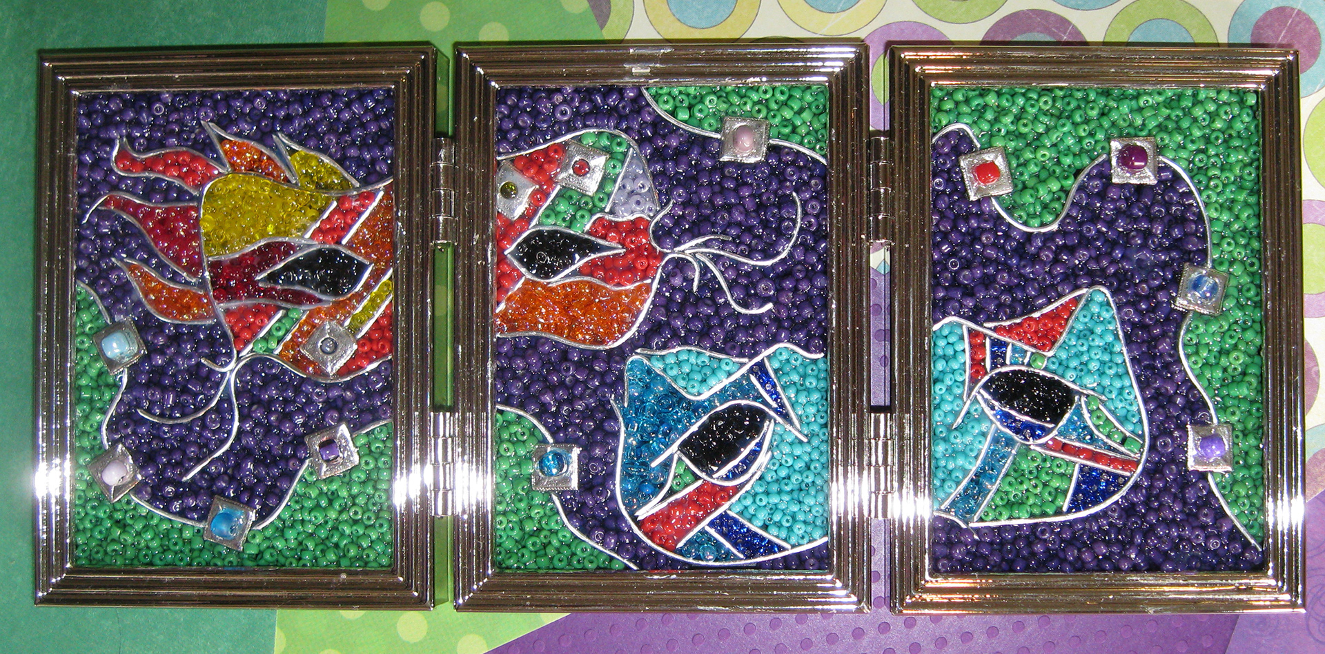Glass and Metal Beads, Mod Podge Dimensional Magic and 5mm Aluminum Wire I embraced my love of beads but set aside my beadstring and beading needles for these pieces.